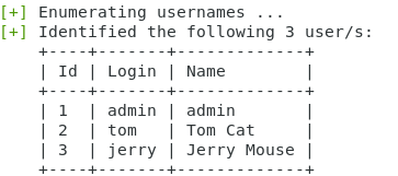 得到admin、tom、jerry三个用户名(其中wpscan的更新数据库哪里卡了一小会,附两个解决的链接:https://blog.csdn.net/zhang644720213/article/details/92849717、https://blog.csdn.net/Wu000999/article/details/100850447)