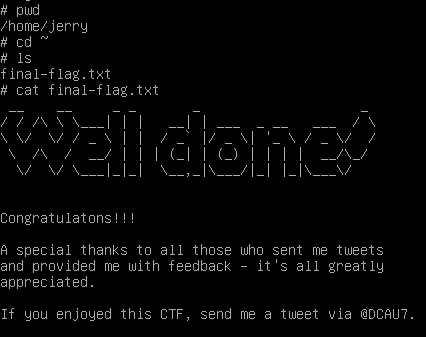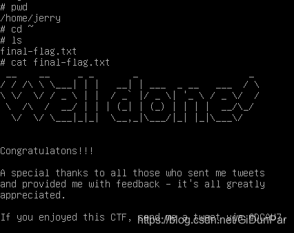 可以看到,现在就是root权限了,finalflag就在主目录下