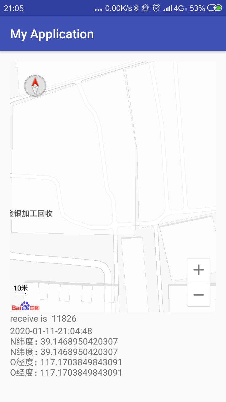 接收线程接收服务器发来的GPS定位数据,通过Handler向主线程传递消息。这里要检测TCP连接的有效性,如果断开连接要重连服务器。
