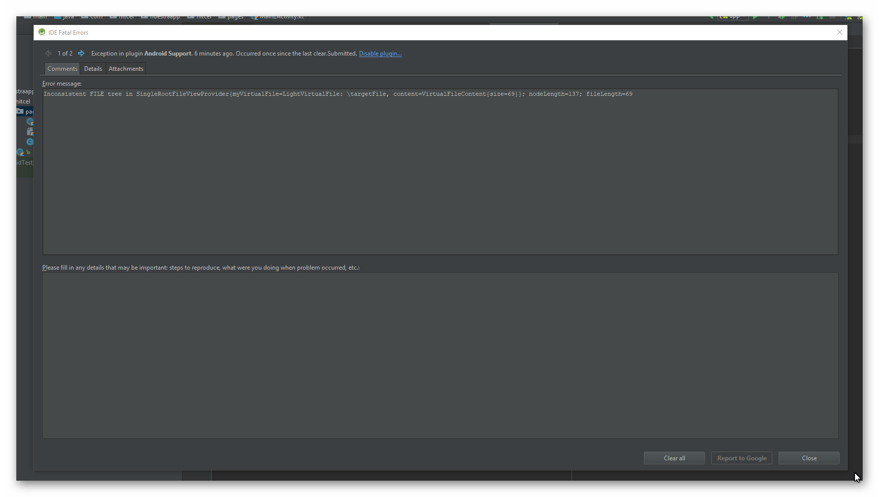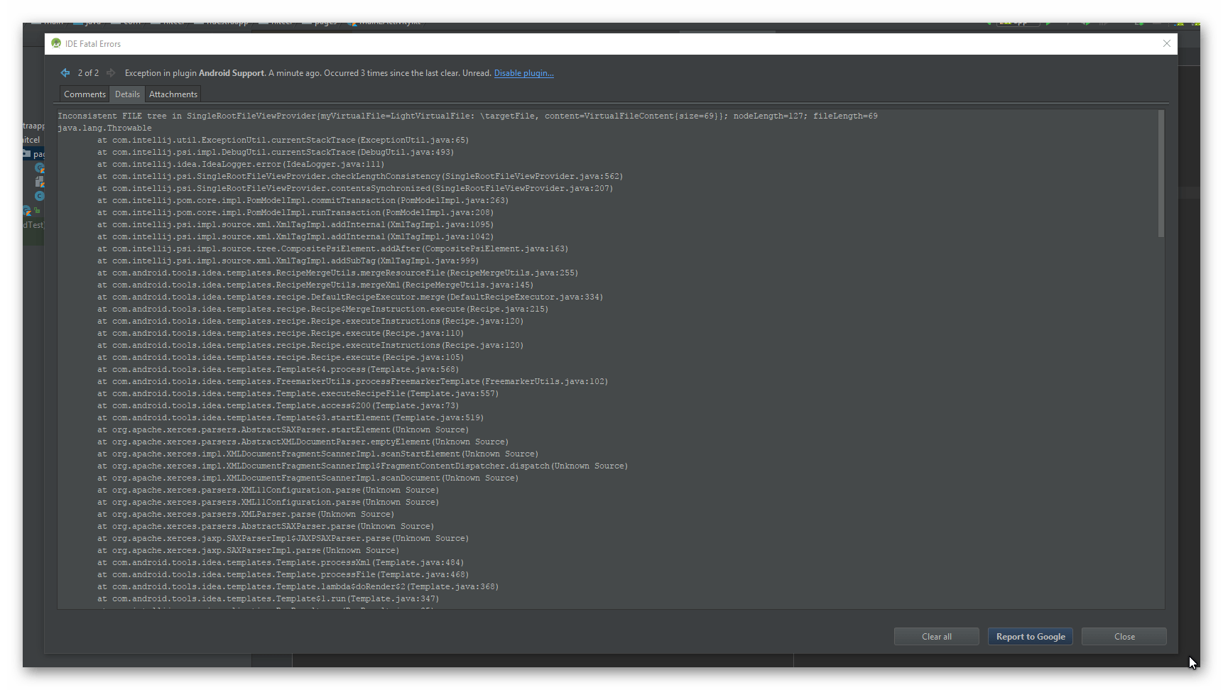 Inconsistent FILE tree in SingleRootFileViewProvider{myVirtualFile=LightVirtualFile: \targetFile, content=VirtualFileContent{size=69}}; nodeLength=137; fileLength=69