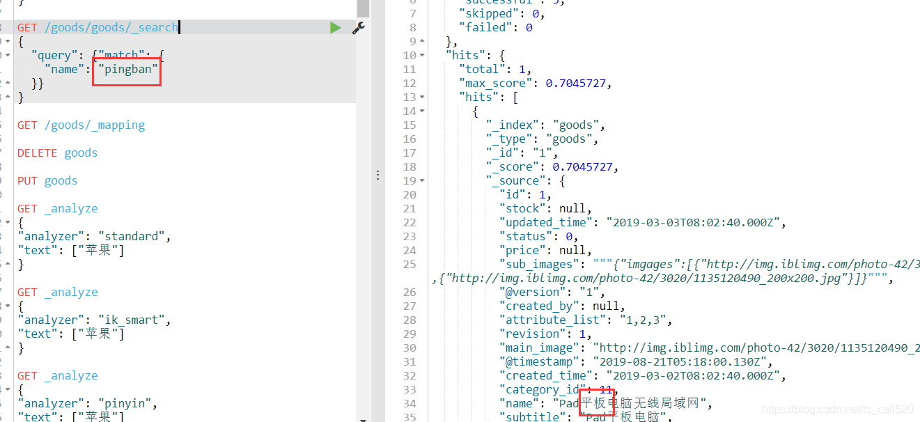 }, "id": { "type": "long" }, "main_image": { "type": "text", "fields": { "keyword": { "type": "keyword", "ignore_above": 256 } } }, "name": { "type": "text", "analyzer":"ik_smart_pinyin", "search_analyzer":"ik_smart_pinyin"