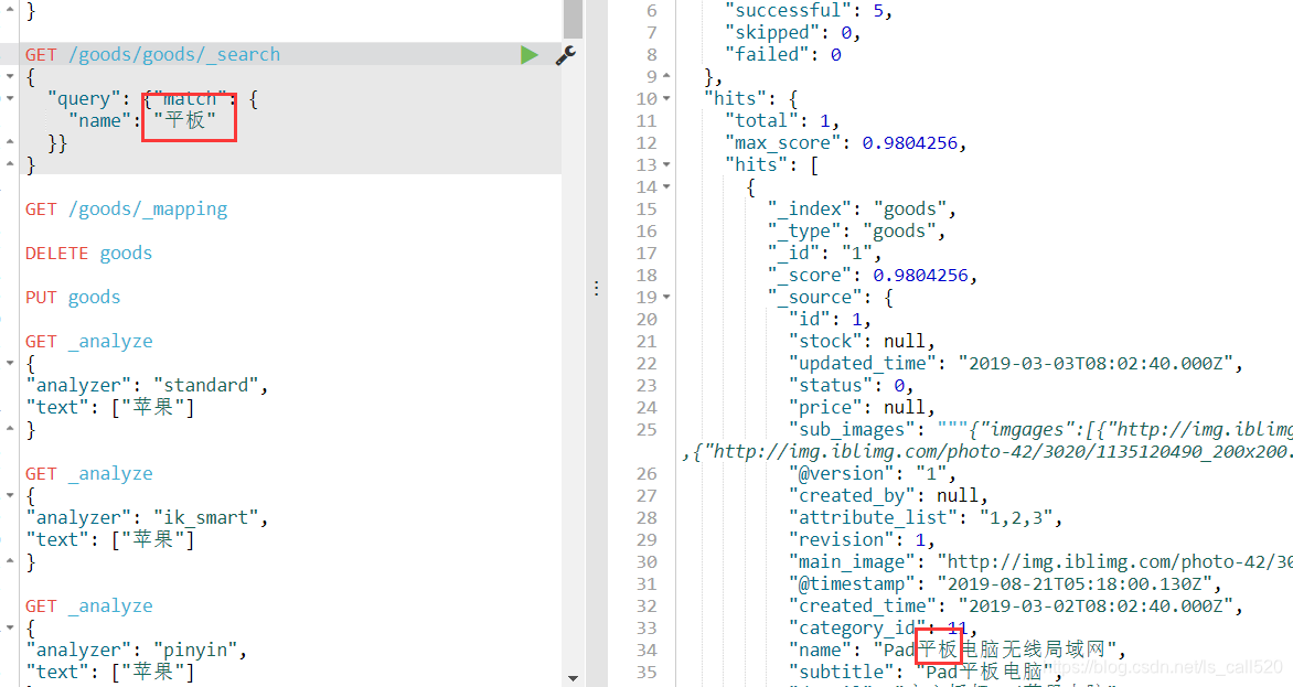 }, "revision": { "type": "long" }, "status": { "type": "long" }, "sub_images": { "type": "text", "fields": { "keyword": { "type": "keyword", "ignore_above": 256 } } }, "subtitle": { "type": "text", "analyzer":"ik_smart", "search_analyzer":"ik_smart"