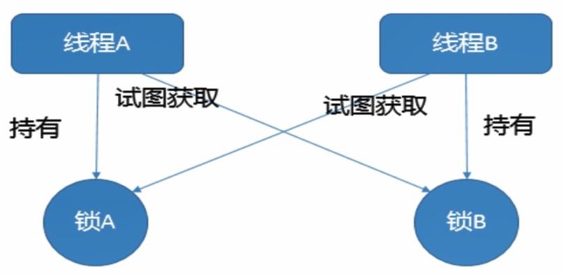 System.out.println(Thread.currentThread().getName() + ", 自己持有" + lockA + "尝试获得" + lockB);