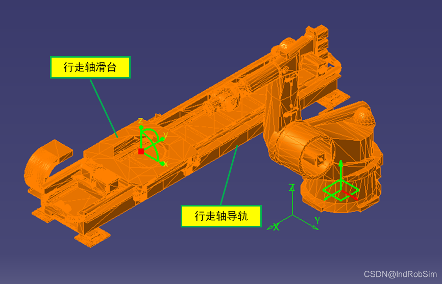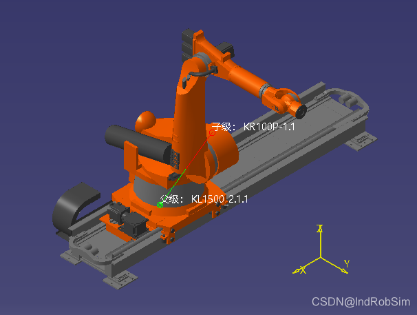2.使用“附加”命令,为机器人与行走轴滑台之间添加父子级关系,以便于机器人能够跟随行走轴滑台一同运行。