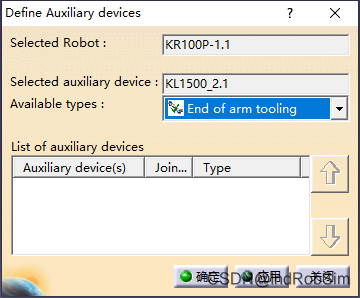1.点击下方Robot Controller工具条中的“Define Auxiliary devices”