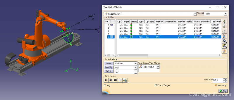 2.使用“Robot Task Simulation”命令,可以对机器人与行走轴进行仿真运行测试。
