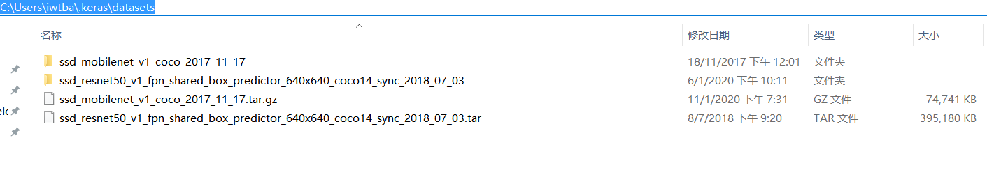 要替换的模型可以从detection model zoo找。源代码的逻辑是从http://download.tensorflow.org/models/object_detection/ssd_resnet50_v1_fpn_shared_box_predictor_640x640_coco14_sync_2018_07_03.tar.gz下载模型。下载好的模型保存在这里: