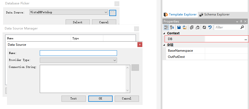 然后使用工具CodeSmith打开这两个文件,