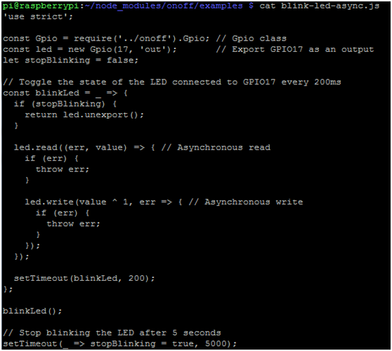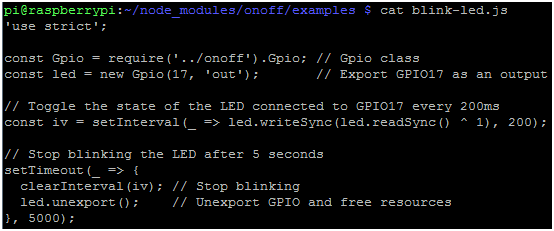 pi@raspberrypi:~/node_modules/onoff/examples $ node blink-led