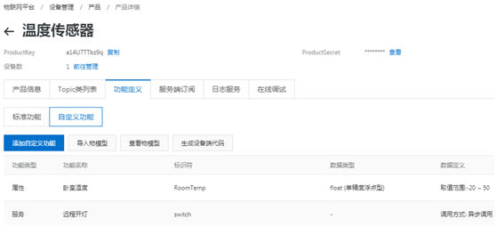 监听物模型服务有异步方式回复和同步方式回复告诉服务端客户端的处理情况。按我们的产品功能定义调用方式是异步调用,标识符是switch。