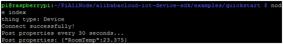 后面的内容见《树莓派连接阿里云物联网平台-订阅(nodejs)》