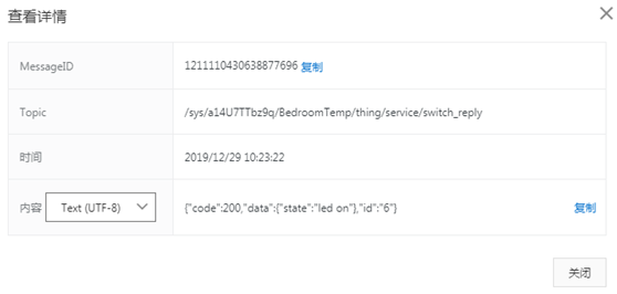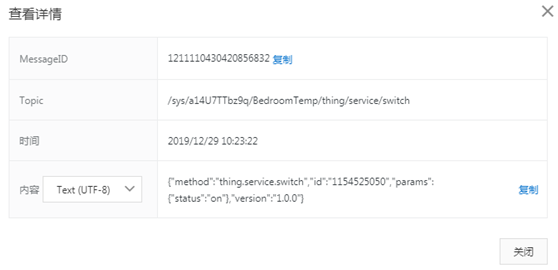 Topic:/sys/a14U7TTbz9q/BedroomTemp/thing/service/switch_reply