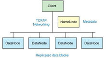 存储在 HDFS 中的文件被分成块,然后将这些块复制到多个计算机中(DataNode)。这与传统的 RAID 架构大不相同。块的大小(1.x版本默认为 64MB,2.x版本默认为128MB)和复制的块数量在创建文件时由客户机决定。NameNode 可以控制所有文件操作。HDFS 内部的所有通信都基于标准的 TCP/IP 协议 [5] 。