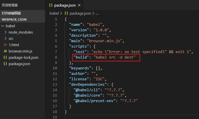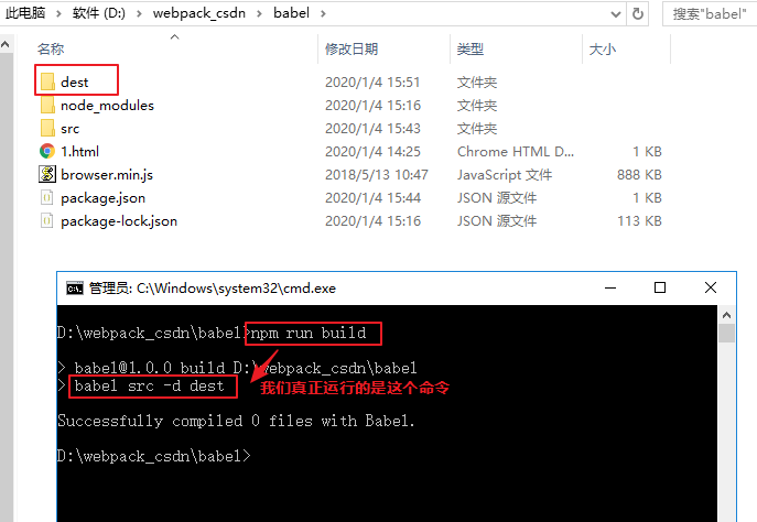 那么 "build": "babel src -d dest" 这条命令是什么意思呢?