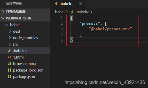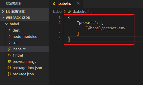 .babelrc 文件里面就是一个 json,主要就是有一个东西:"presets"。