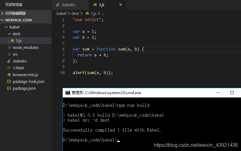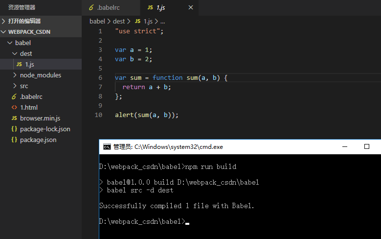 然后我们就可以看到,dest 目录下面也多了一个 1.js 文件。