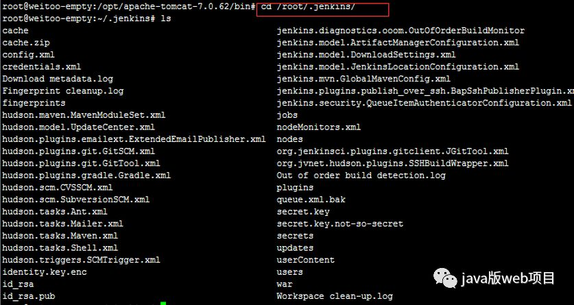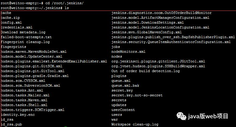 很多情况下稍不注意改变了Jenkins的配置,把平台弄坏了,又想去恢复,这个时候就得把Jenkins的配置文件进行配置或者版本化,只需要把/root/.jenkins/加入git版本库里即可,该目录下包含Jenkins所有信息,包括每次构建历史信息和历史jar包