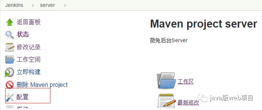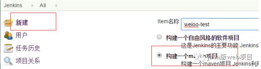 步骤:首页->新建->构建一个maven项目(输入item名称)->进入该项目->配置