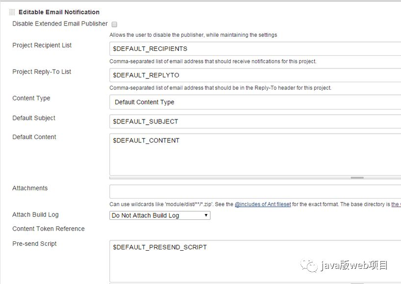 我们选择构建失败Failure-1st触发器,失败以后发邮件给开发者,(这里可以根据实际需要,配置,可以配置多个触发器)开发者的邮件在Recipient List里配置。