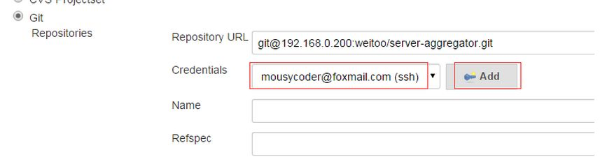 Repository UR 项目地址 Credentials授权可以是SSH也可以是用户名密码(SSH方法同上)