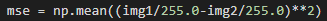 mse = np.mean((img1/255.0-img2/255.0)**2)