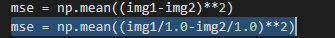 mse = np.mean((img1/1.0-img2/1.0)**2)
