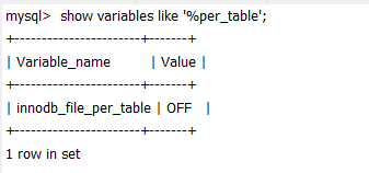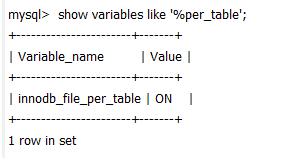 mysql> show variables like "innodb_file_per_table"; |