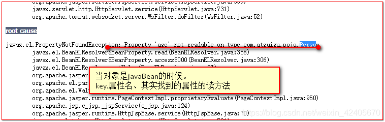 注:${ p.age } p 表示一个Person对象.那么p.age 中的age表示找person对象的getAge方法(也就是读方法)
