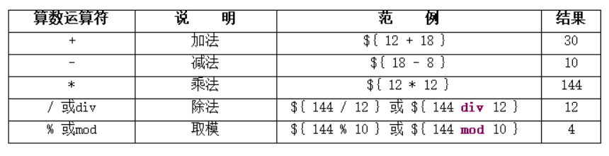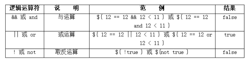 语法:${ 运算表达式 } , EL 表达式支持如下运算符: