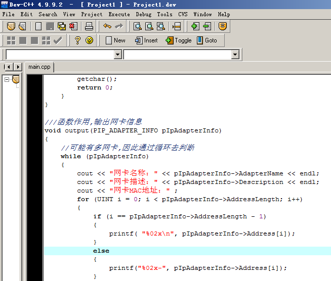 ///需要Iphlpapi.lib库 ,devc++中 项目 -> 项目选项-> 参数 -> 添加链接库 libiphlpapi.a
