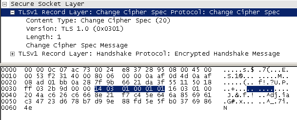 6.Client发送ChangeCipherSpec,指示Server从现在开始发送的消息都是加密过的