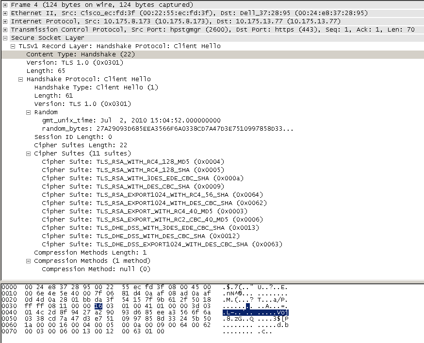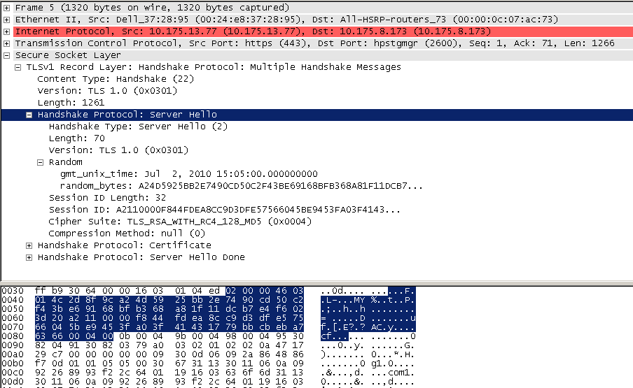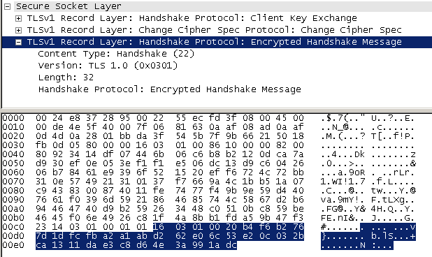 下面从抓包数据来具体分析这一过程并说明各部分数据的作用以及如实现前面列出的握手的目标,当然了,最重要的还是说明为何这一过程是安全可靠的,第三方无法截获,篡改或者假冒