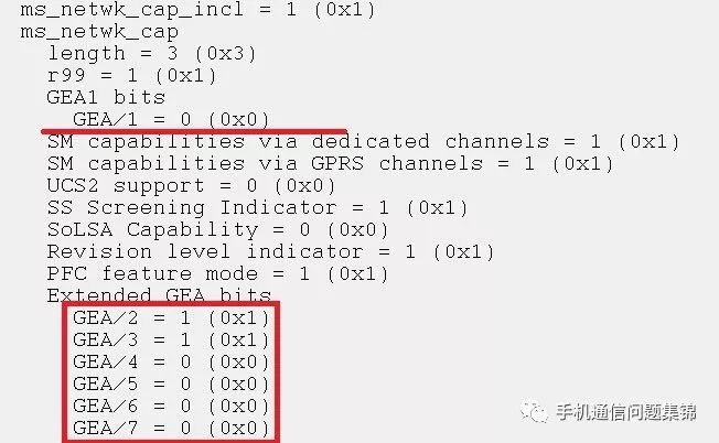 在表示2G相关能力的MS_Network_Cap IE里包含了支持和不支持的GEA算法,但这些GPRS相关的加密算法在网络发给UE的NAS SMC中是不包含的,UE security capabililty mismatch是不是跟这个相关呢?