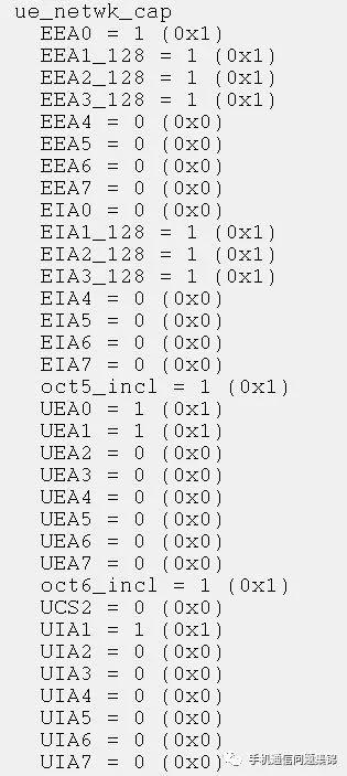 那实际上UE支持的安全相关的能力又有哪些呢?在UE发给网络的Attach Request中,我们可以找到以下答案。