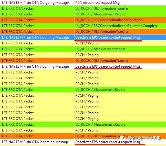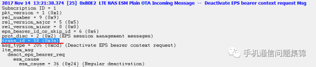 查看OTA日志,确实如测试人员所说,当UE收到了Deactivate EPS bearer context request MSG后未发送后续的DEACTIVATE EPS BEARER CONTEXT Accept。