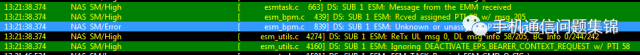 关键就是标识为Error类型的MSG 13:21:38.374 NAS SM/Error [ esm_bpm.c 839] DS: SUB 1 ESM: Unknown or unassigned PTI 58 received by ESM