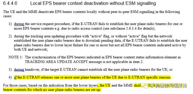 那UE的这种本地释放EPS bearer的行为是否正确呢?