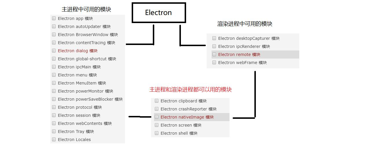 3. electron的主进程与渲染进程各自的模块,以及公共模块: