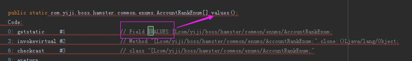反编译对象-字节码代码如下:javap -c -encodeing UTF-8 AccountRankEnum.class