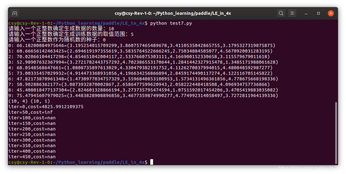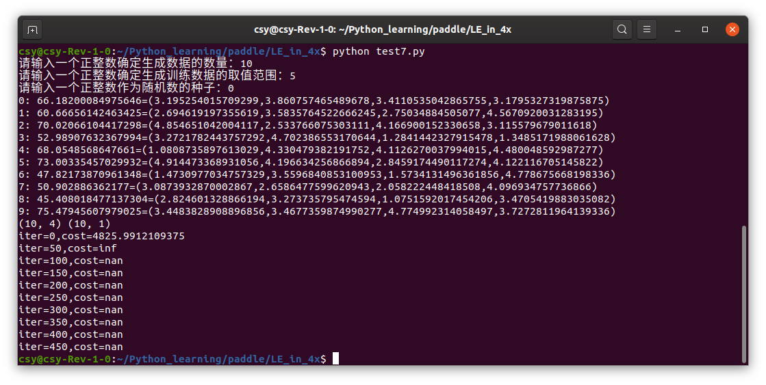 train_data = np.array(outputs).astype('float32') # 训练数据使用10组随机生成的数据,将整型随机数改为浮点型