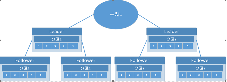 每个分区有多个副本。那些副本被保存在broker上,存储Leader副本的节点就是Leader节点,存储Follower副本的就是Follower节点。所以后面Leader副本,Leader节点不做区分,都叫Leader。每个broker可以保存成百上千个属于不同主题和分区的副本。如下图,主题1被分为2个分区,每个分区3个副本(分区下面的数字是偏移量)
