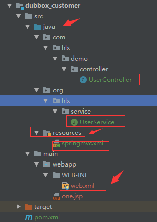 将“dubboxservice”工程的org.hlx.service 包下面的接口拷贝至此工程。
