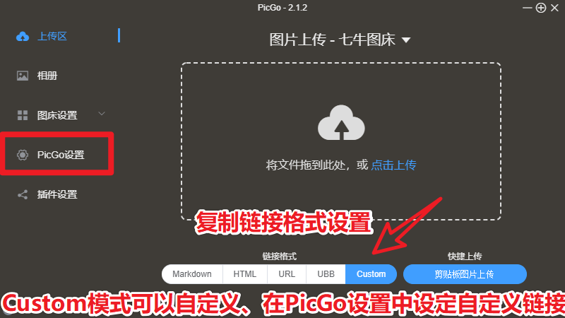 Custom模式可以自定义链接格式
