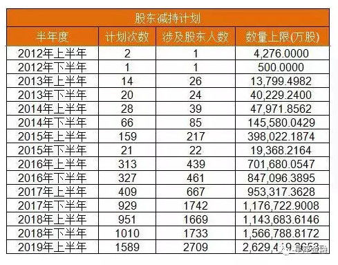 下图是2012年以来,A股的大股东减持计划,每半年的数量变化情况。