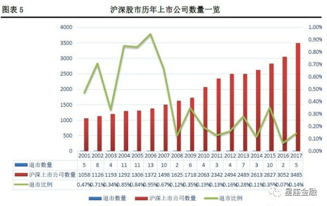每年发行400多支股票,但每年退市数量却只有个位数。