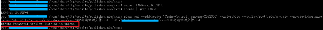 而同一个文件,切换到 UTF-8 环境下,上传报错