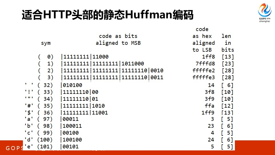 Huffman编码在winrar等压缩软件中广为使用,但HPACK中的Huffman有所不同,它使用的是静态huffman编码。即,它统计了互联网上几年内的HTTP头部,按照每个字符出现的概率,重建huffman树,这样,根据规则,出现次数最多的a、c、e或者1、2、3这些字符就只用5个bit位表示,而很少出现的字符则用几十个bit位表示。