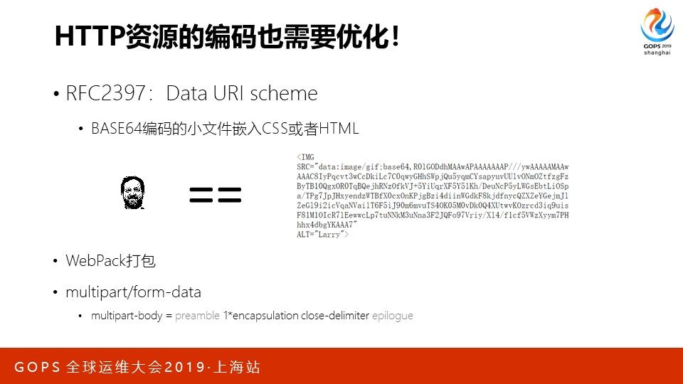 说完header,再来看http body的编码。这里只举3个例子:1、只有几十字节的小图标,没有必要用独立的HTTP请求传输,根据RFC2397的规则,可以把它直接嵌入到HTML或者CSS文件中,而浏览器在解析时会识别出它们,就像下图中的头像: