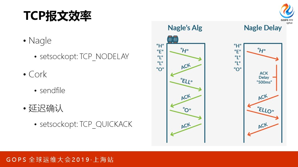 最后看下TCP的报文效率,它也会影响之上的HTTP性能。比如开启Nagle算法后,网络中的小报文数量大幅减少,考虑到40字节的报文头部,信息占比更高。