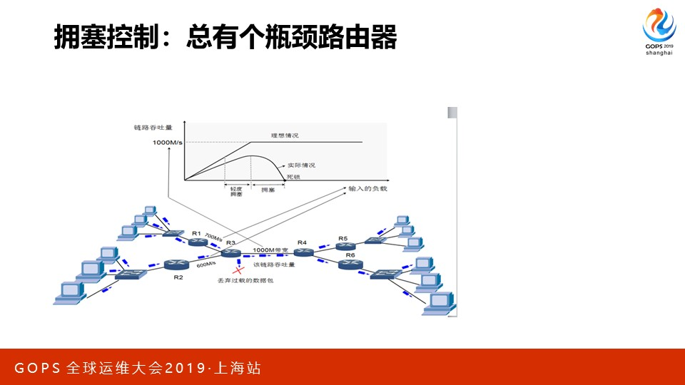 就像上图,R1的峰值网络是700M/s,R2的峰值网络是600M/s,它们都需要通过R3才能到达R4。然而,R3的最大带宽只有1000M/s!当R1、R2中的TCP全速使用各自带宽时,就会引发R3丢包。拥塞控制就是解决丢包问题的。